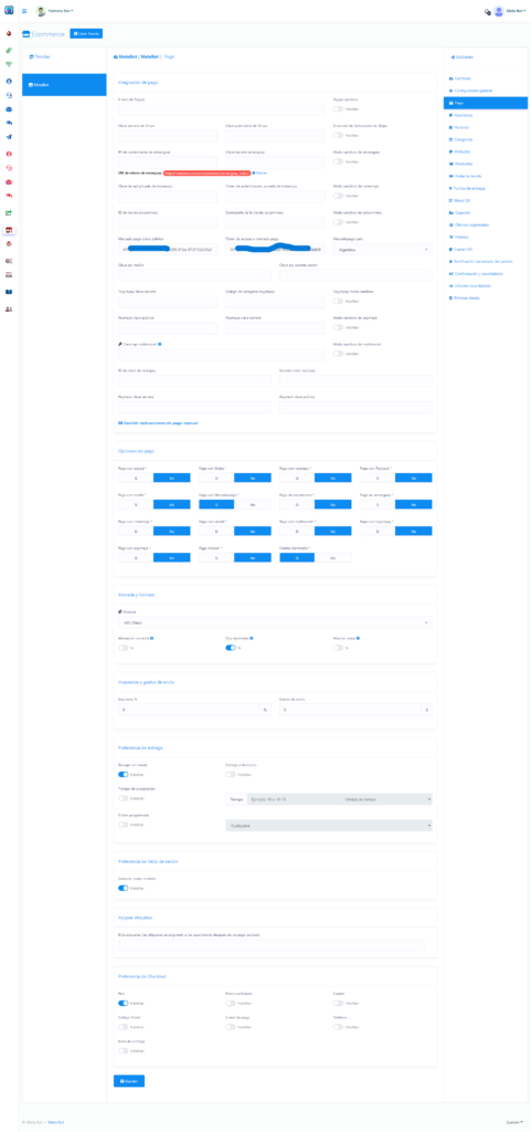 Desde este apartado podrá configurar todas las alternativas de pago que ofrecerá su tienda online.